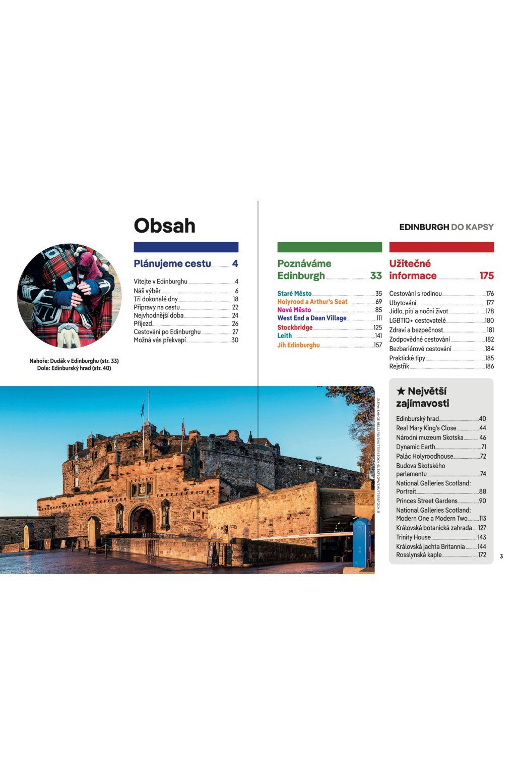 Součástí je také samostatná rozkládací mapa centra Edinburghu s přehledem hlavních památek.