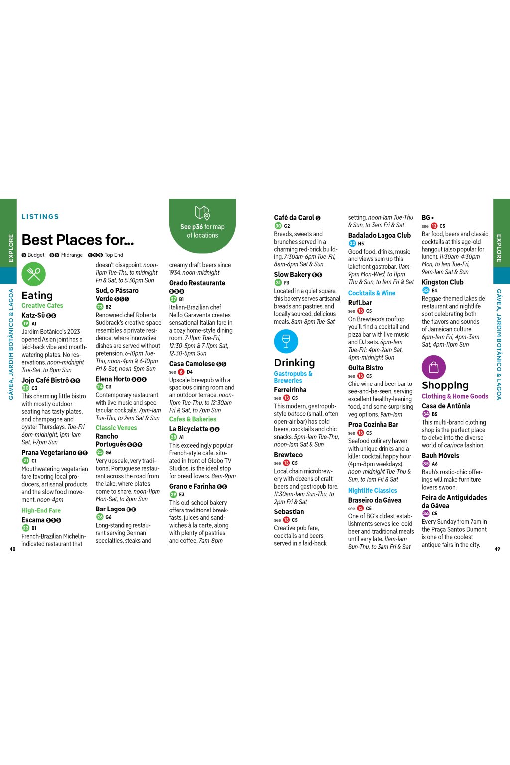 Covers: Gávea, Jardim Botânico & Lagoa; Ipanema & Leblon; Copacabana & Leme; Botafogo, Urca & Humaitá; Flamengo, Laranjeiras, Catete & Glória; Santa Teresa & Lapa; Centro & Zona Norte; Zona Oeste
