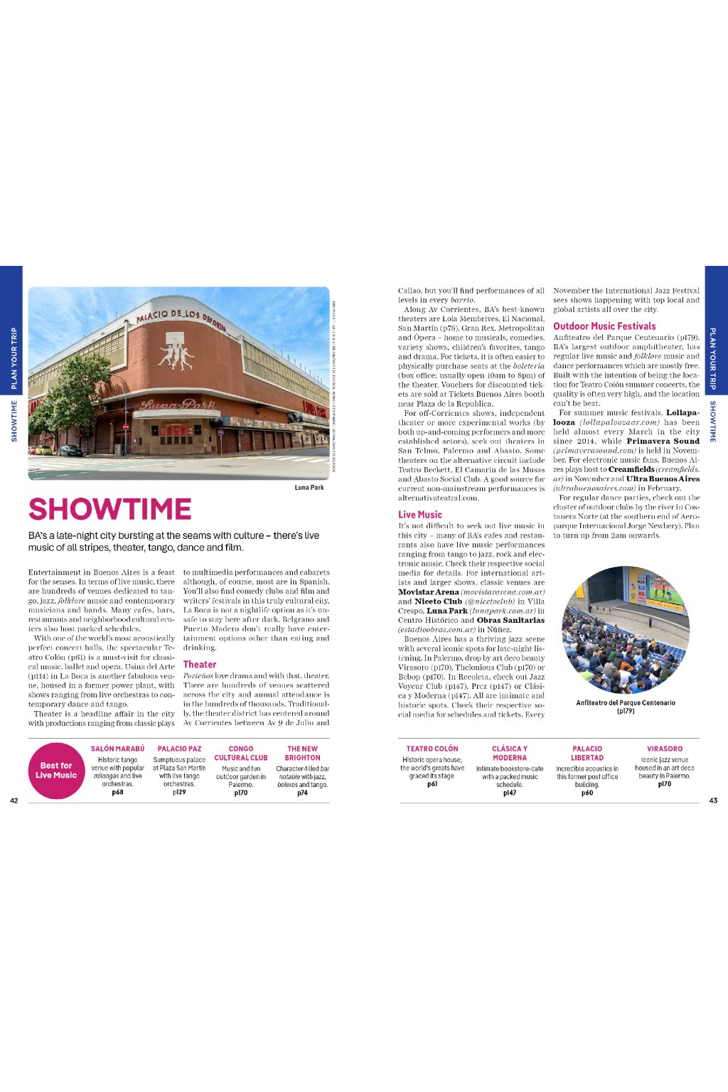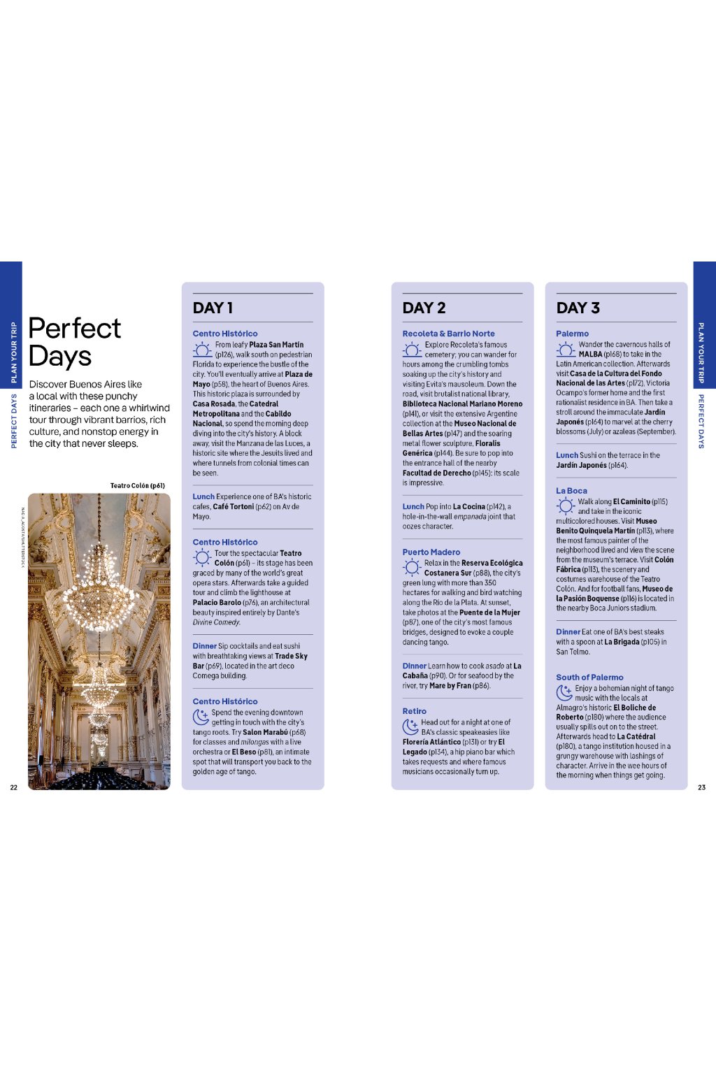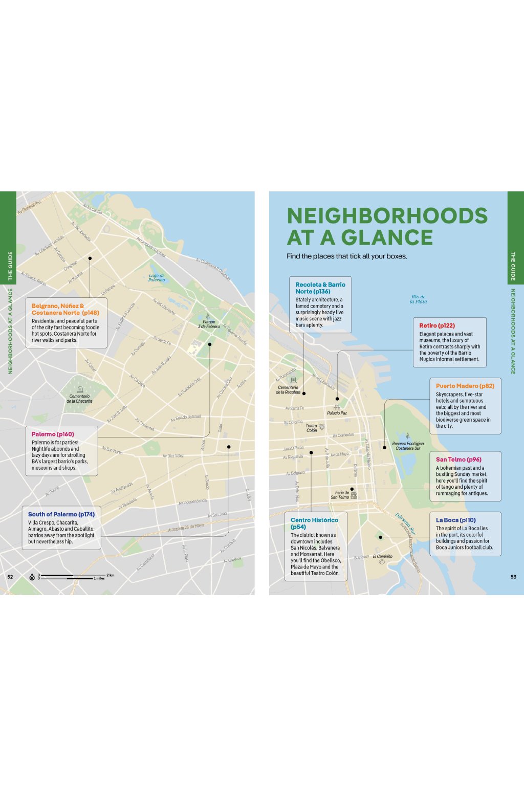 Covers: Centro Histórico; Puerto Madero; San Telmo; La Boca; Retiro; Recoleta & Barrio Norte; Belgrano, Núńez & Costanera Norte; Palermo; South of Palermo plus day trips to Campana; Tigre; La Plata; Colonia del Sacramento