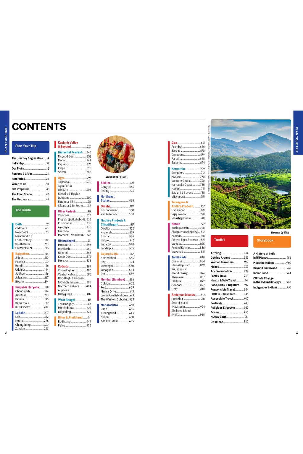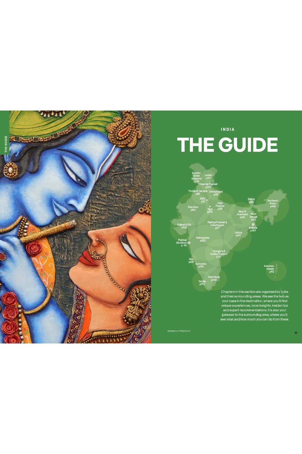 Covers: Delhi; Rajasthan; Punjab & Haryana; Ladakh; Kashmir Valley & Beyond; Himachal Pradesh; Agra; Uttar Padesh; Uttarakhand; Kolkata; West Bengal; Bihar & Jharkhand; Sikkim; Northeast States; Odisha; Madhya Pradesh & Chhattisgarh; Gujarat & Diu; Mumbai (Bombay); Maharashtra; Goa; Karnataka; Telangana & Andhra Pradesh; Kerala; Tamil Nadu; Andaman Islands