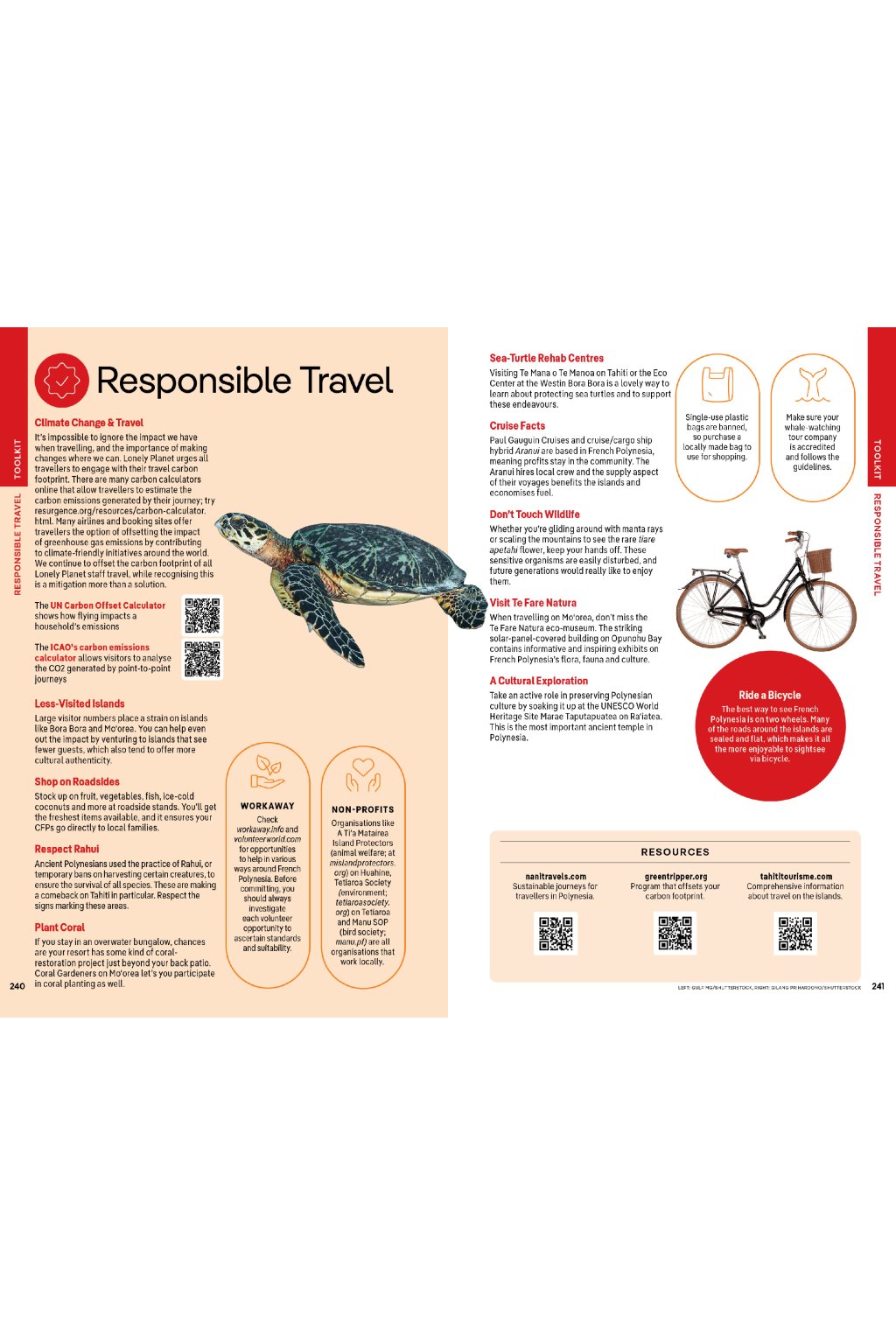 Essential information toolkit containing tips on arriving, transport, local etiquette, using money, LGBTIQ+ travel advice, useful words and phrases, accessibility and responsible travel